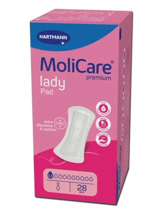 העיצוב האנטומי והאלסטיות באזור המפשעה יוצרים פד דיסקרטי ונוח ביותר לשימוש במקרים של בריחת שתן קלה. המדבקה הארוכה המצויה לאורך הפד מונעת תזוזה ושומרת את הפד הסופג במקומו. פדים לבריחת שתן מסדרת מוליקייר ליידי מתאימה למצבי אי שליטה קלה ולנשים לאחר לידה.